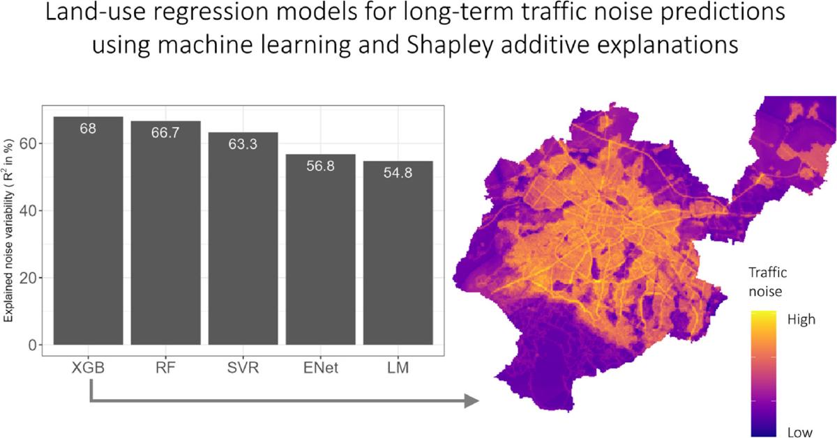 Traffic noise is becoming a serious problem, not only because it harms human health but also because it hinders the environmental sustainability of cities. Most studies that analyze how traffic noise is related to human health depend on detailed noise data, but such information is often hard to get, especially in Eastern Europe. We address this lack of noise data by using machine learning techniques to estimate long-term road traffic noise levels obtained from 232 measurement locations across the five largest cities in Bulgaria. Our results show that noise levels vary considerably across urban areas and that, for example, the distance to major roads and railroads is a critical factor in traffic noise levels. We also found that showed that 95% of the population in the five cities experienced harmful noise levels. Our noise maps are freely available to the public and can be reused in other studies and for urban policymaking.