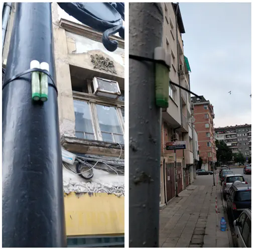 The measurements were taken at 40 points. Given the resources available at the time, monthly measurements were taken at 26 points, while the remaining 14 were divided into two groups of seven, with measurements taken once a month for each group. Forty measurement points for a city the size of Plovdiv can be considered sufficient to account for spatial variations in NO2, allowing for the subsequent creation of a model. The determination of the optimal location for measurements largely followed the guidelines of previous projects, but took into account the urban fabric of Plovdiv and the technical capabilities of the team – to be located away from intersections, to cover points along roads of different classes according to expected traffic intensity, to have points near the air quality monitoring stations of the Ministry of Environment and Water/Executive Environment Agency for the purpose of calibrating the measurements, to have points on open-type roads and street canyons. NO2 measurement points were added, selected by intersecting urban spatial characteristics – traffic volume, urban street canyon profiles (closed and semi-open), altitude and the presence or absence of riverine areas in the vicinity, considering their microclimatic influence.